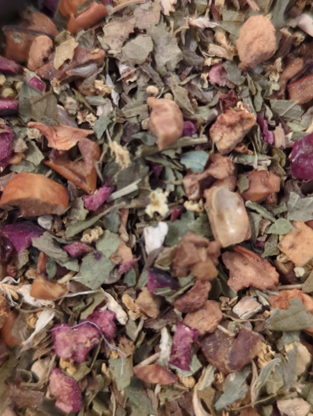 Ingredients: Apple pieces, Strawberry leaves, Ashwagandha root, Elderflower petals, Cranberry pieces, Cornflower petals, Natural Flavours